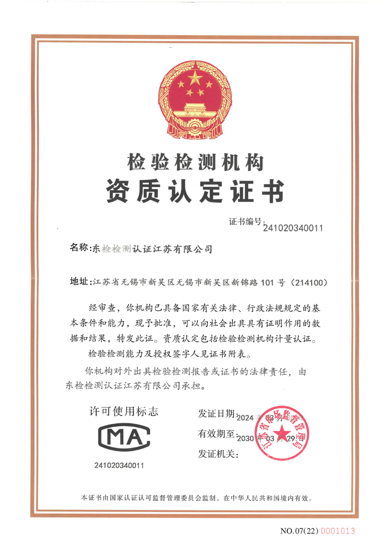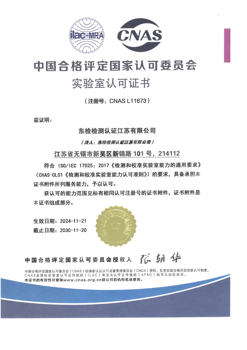 東檢檢測認證江蘇有限公司(m.wxobjx.com.cn)?